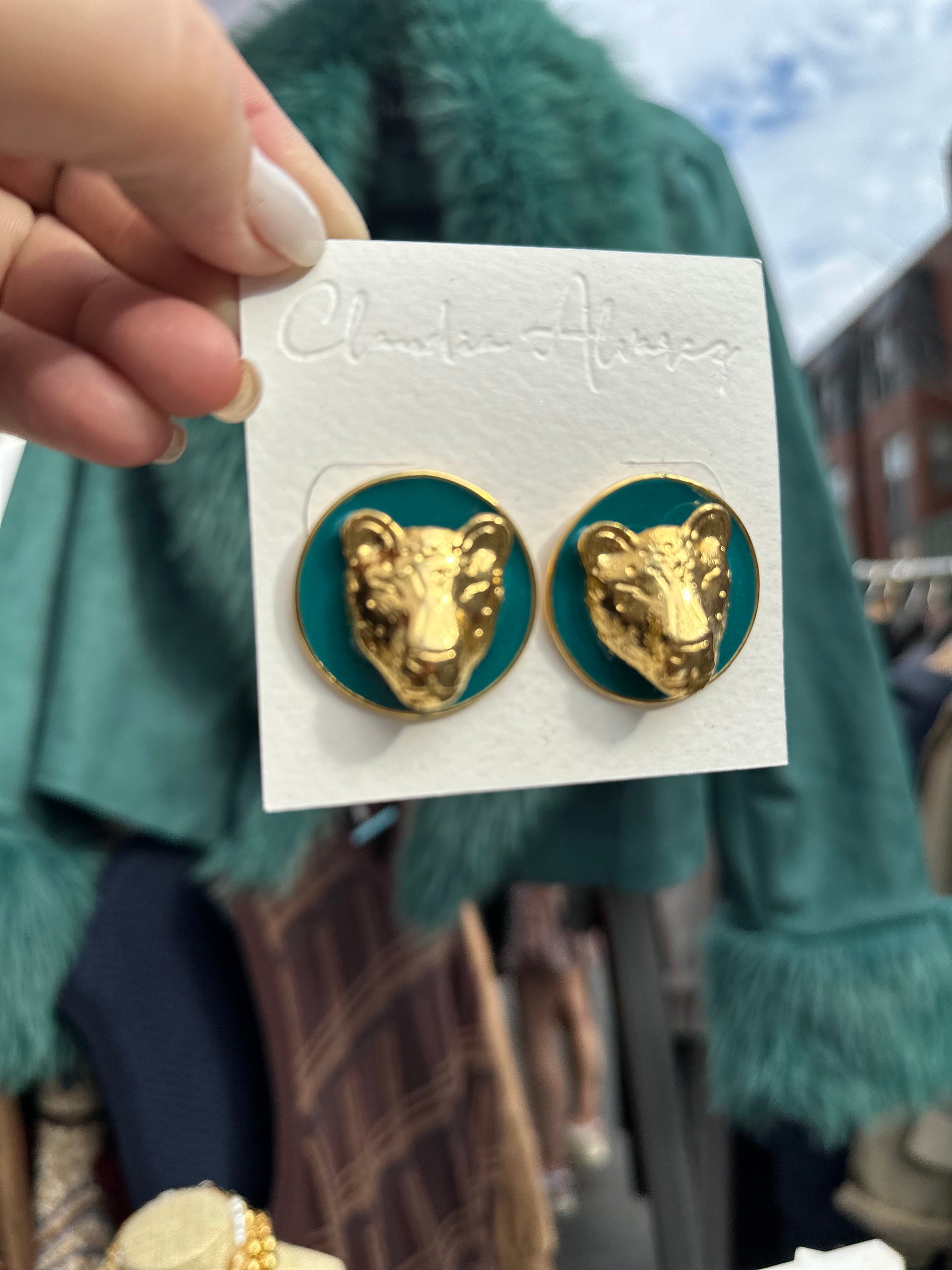 Green Cheetah Earrings